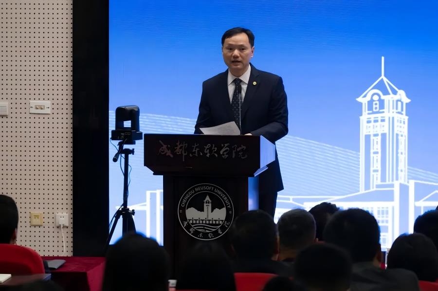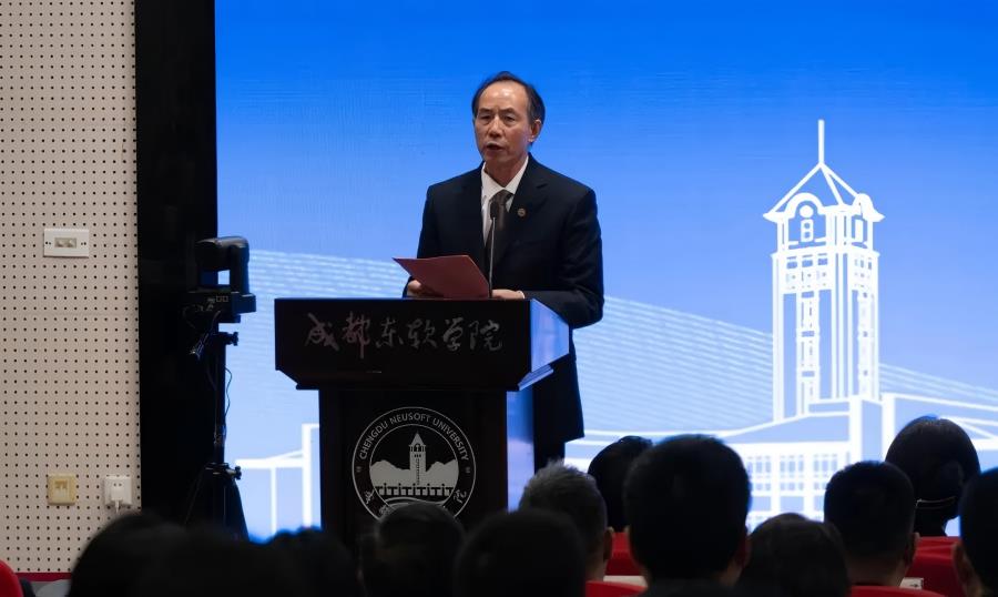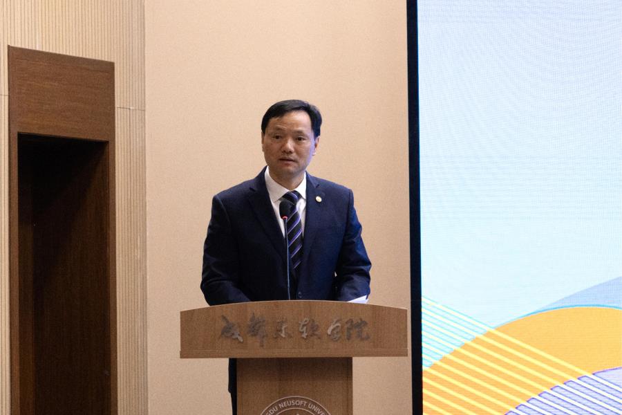四川省教育厅二级巡视员付军代表省委教育工委、省教育厅发表讲话。他向线上线下评估专家的辛勤付出致以衷心感谢和崇高敬意,向全力支持审核评估工作的成都东软学院全体师生员工表示诚挚问候。他指出,本次审核评估考察标志着我省地方高校新一轮审核评估驻校阶段任务全面完成。专家组出具的评估意见兼具科学性、前瞻性与权威性,为学校深化本科教育教学改革、提升人才培养质量、落实立德树人根本任务提供了有力指导。他对我校提出三点要求: