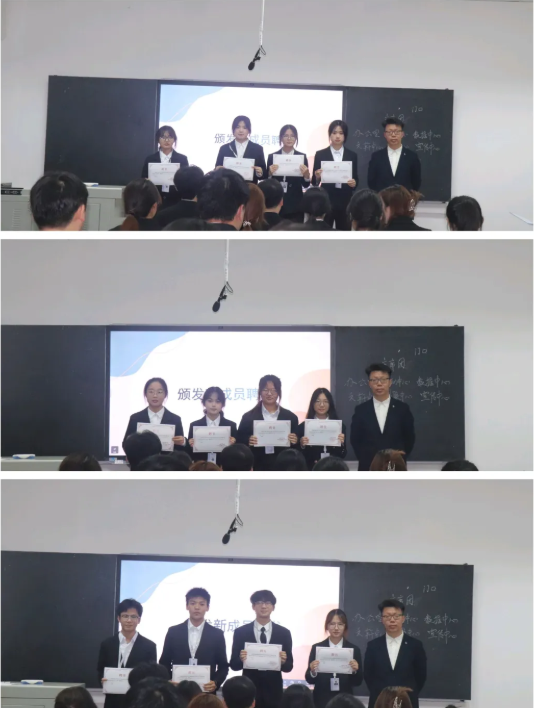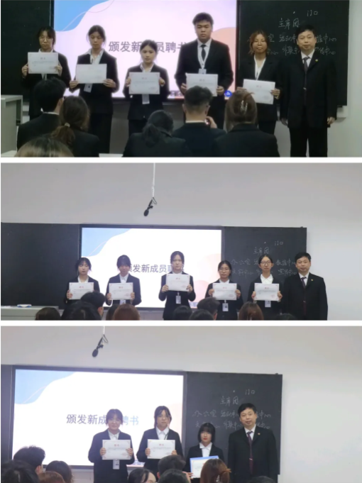 聘书发放环节作为大会重要议程,由冉君老师和洪伟老师共同为办公室、数据中心、外联中心等六个部门的新成员逐一颁发。崭新的聘书既是对成员身份的正式确认,也寄托了协会对大家投身教学质量创新工作的殷切期望。
