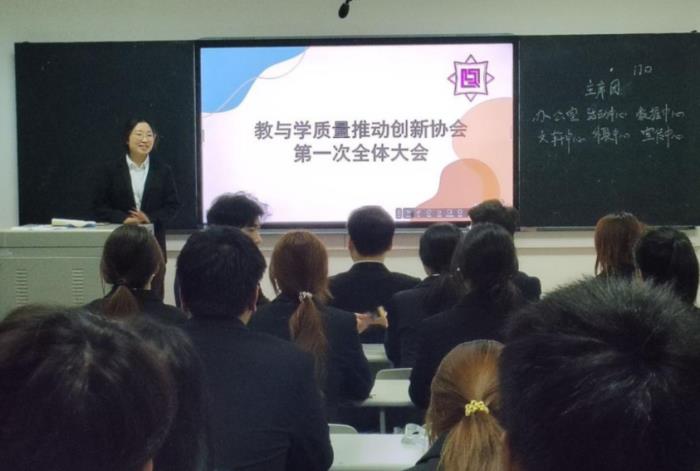 教与学质量推动创新协会(以下简称“教协”)于2025年10月29日晚在A7-107召开第十三届第一次全体大会。教学质量管理与保障部(以下简称“质量部”)冉君、洪伟老师出席会议,会议由文轩部门干事向雨晴主持。本次大会围绕聘书发放、制度宣讲、工作汇报与未来规划等六项议程展开,明确了成员权责,并通过交流复盘近期工作,为后续高效协作奠定基础。