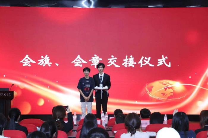 在全体参会者的见证下,第十二届主席郑文俊庄重地将协会会旗、会章交付于第十三届当选主席郭子谦手中。这一简洁而富有象征意义的仪式,标志着社团领导职责的正式传递。