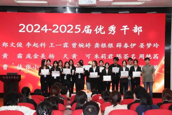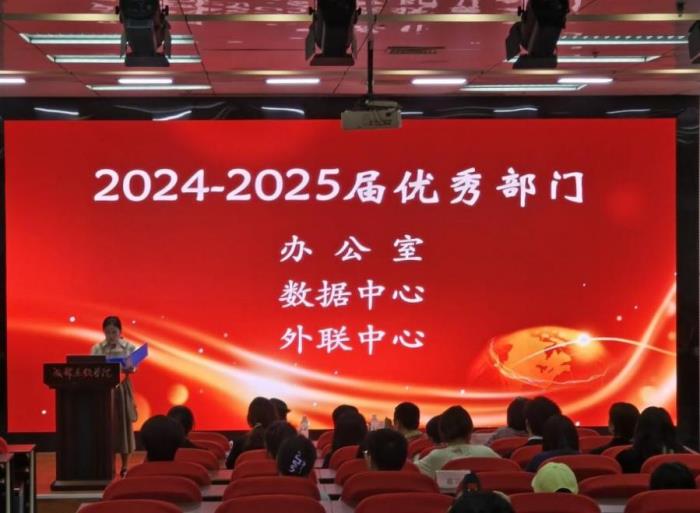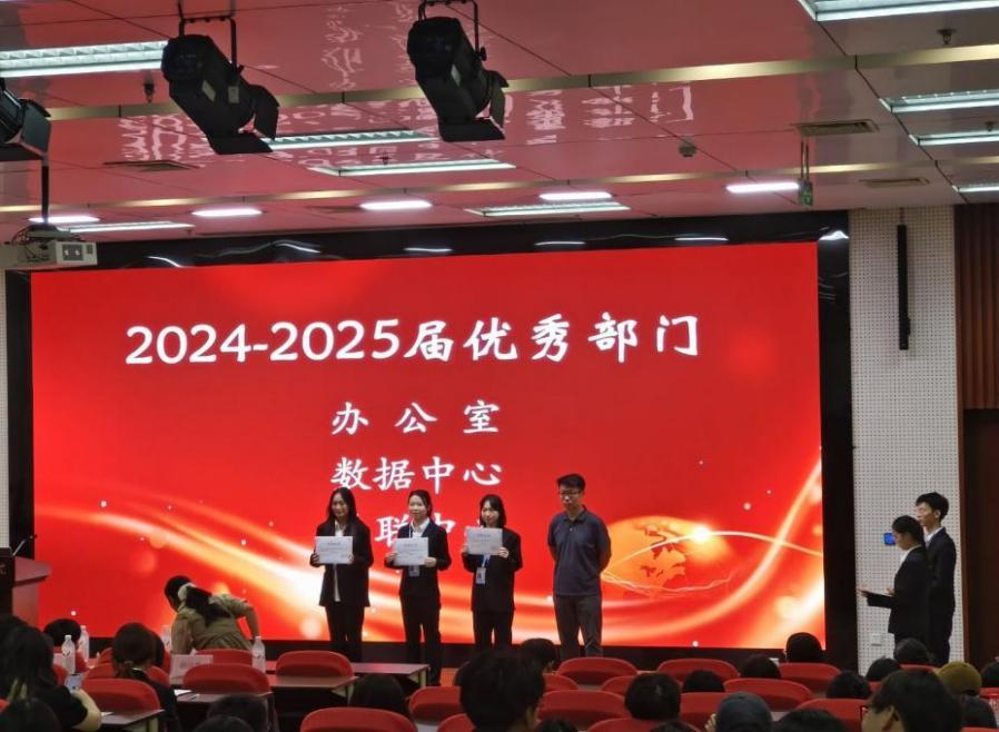一直以来,教协始终注重成员能力培养与内部交流,在这样温馨浓厚的氛围中,培育出一批综合素质突出的优秀学生代表。基于此,宋艳老师宣读 2024-2025 学年优秀部门、优秀干部与优秀干事名单。随后,洪伟老师为优秀部门 —— 办公室、数据中心、外联中心的代表颁发荣誉证书;林敏部长为优秀干部郑文俊、王一霖、曾婉婷等同学颁发荣誉证书;胡潇云老师为优秀干事王尧、魏青青、喻露等同学颁发荣誉证书。