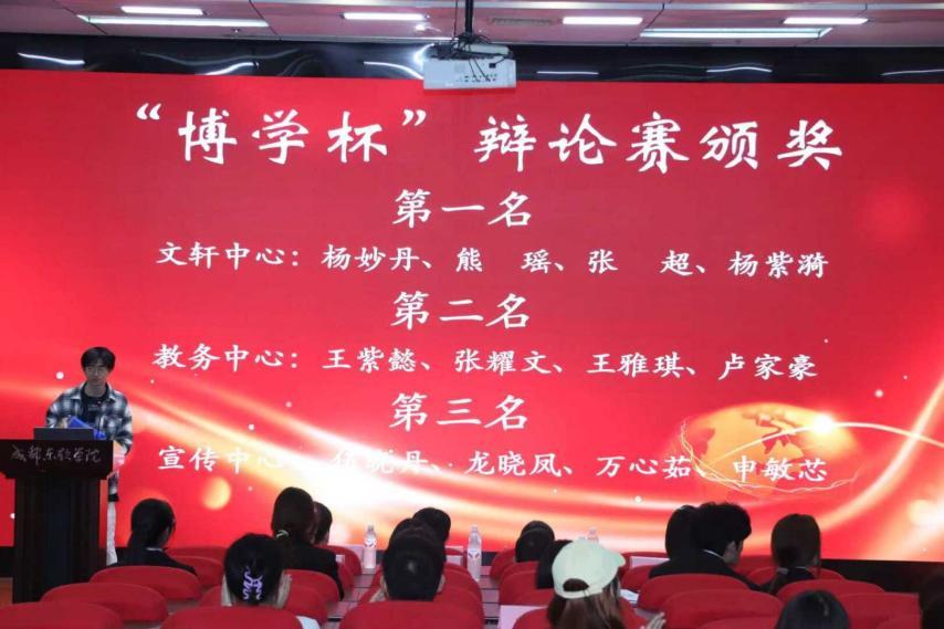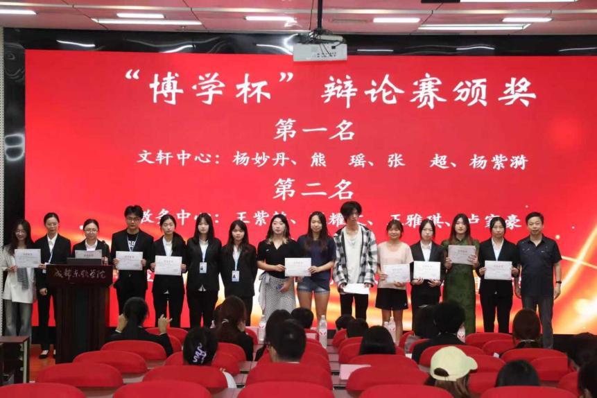 在过去一学年中,教协为充分激发成员的思辨积极性与参与热情,成功举办第二届 “博学杯” 辩论赛。比赛中,选手们展现出的出色思辨能力与临场表现,给评委及观众留下深刻印象;赛后,经评委组严谨审慎的综合评议,最终确定本次辩论赛的优胜者名单。随后,郑文俊主席宣读第二届 “博学杯” 辩论赛获奖名单 —— 文轩中心代表队摘得桂冠,教务部代表队、宣传中心代表队分获亚军、季军。除团队荣誉外,辩论场上亦有展现出个人超凡的思辨能力、语言感染力与临场表达水平的杰出辩手脱颖而出。随后,洪伟老师为侯湘煜、翁晓曼等 6 名同学郑重颁发“最佳辩手”证书。