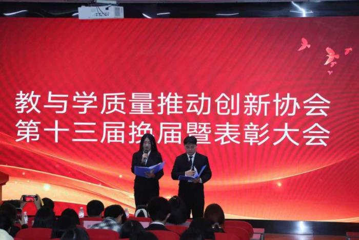 教与学质量推动创新协会(以下简称 “教协”),是成都东软学院教学质量管理与保障部(以下简称 “质量部”)主管的一个纪律严明、务实高效的学生社团。在第十二届主席团及全体干部的统筹带领下,教协在组织建设、社团管理、人员配置等方面实现系统性跃升。为确保工作连续性与组织生命力,教协于 2025 年 9 月 4 日19:00,在学院 A3-104 报告厅召开第十三届换届暨表彰大会。大会严格履行章程规定,选举产生第十三届主席团及六大职能中心新一届负责人,并对 2024-2025 学年表现突出的先进集体与优秀个人进行集中表彰。本次大会由外联中心贺柳、活动中心张长生共同主持。