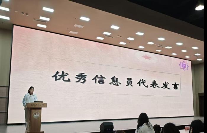 大会的第二项议程就是现场对表现突出的优秀教学信息员予以表彰。冉君老师上台,郑重宣读本次优秀信息员表彰名单,现场掌声热烈、氛围庄重。
