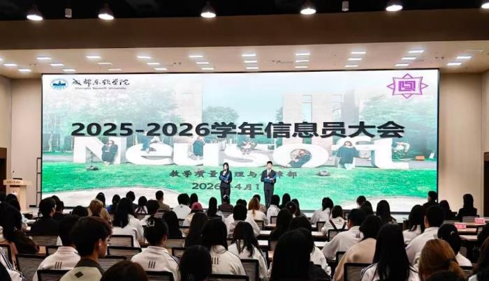 为进一步畅通教学信息反馈渠道,充分发挥全校教学信息员在教学质量管理中的桥梁作用,2026年4月1日中午12点40分至下午1点40分,教与学质量推动创新协会(以下简称“教协”)在A11-322华天国际报告厅成功举办了2025-2026学年教学信息员大会。教学质量管理与保障部学生助理团队,教与学质量推动创新协会全体成员以及全校2023级、2024级和2025级各班共计500余名教学信息员参加会议。教学质量管理与保障部(以下简称“质量部”)部长温荷教授,副部长宋艳教授,冉君副教授,胡潇云、胡佳菁、洪伟老师到会指导。